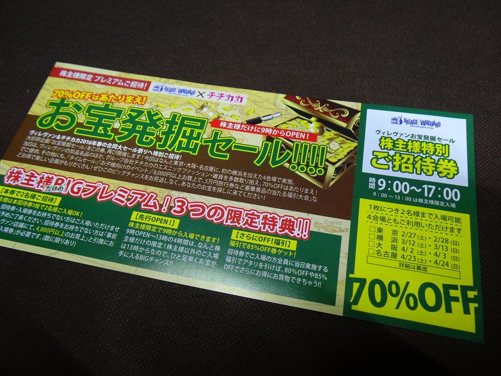 その招待券が3枚同封されています。1枚で2名まで入場可能なので、株主以外の知人・友人・家族などを誘い合わせて参加が可能。また、セール前にヴィレヴァン店舗にて4,000円以上の買い物をしても入場券が手に入るようです(枚数限定)。