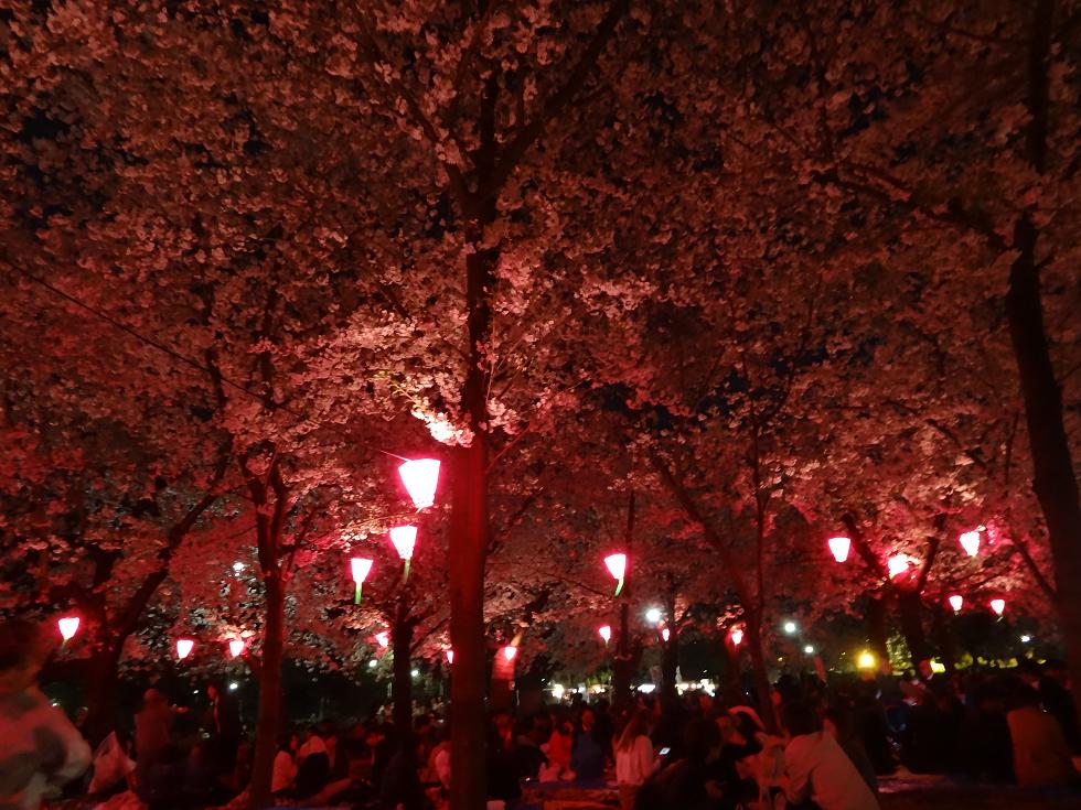 そうこうしているうちに日も沈み、公園は夜桜へと変わっていきます。