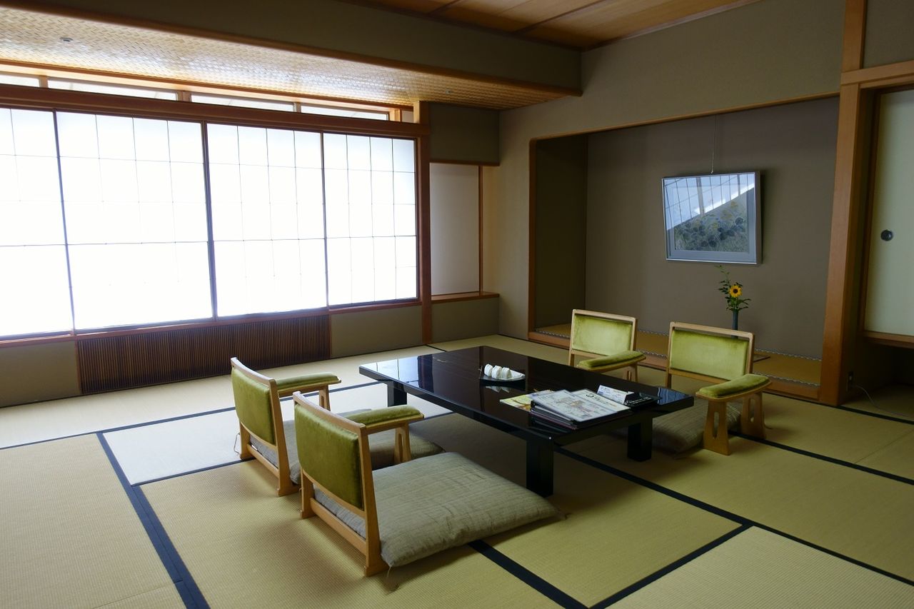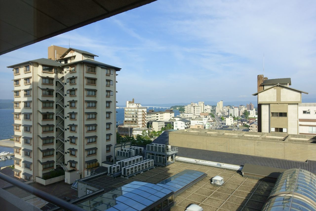 かなり広いです。お座敷、控え、広縁の3部屋あります。景色はオーシャンビューではないものの和倉の街並みを眺めることができます。